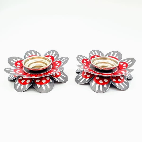 פמוטים נמוכים דגם עלי כותרת - אדום אפור