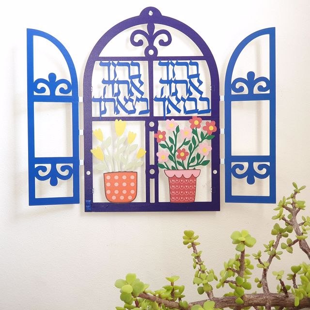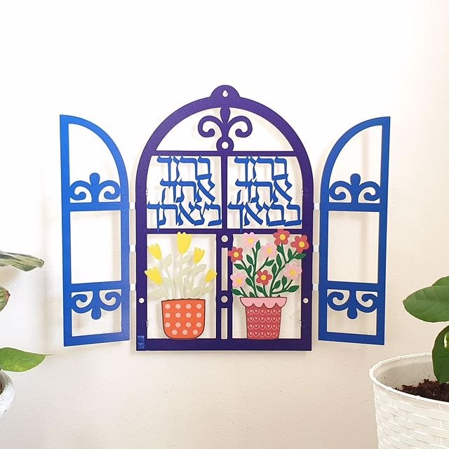 שלט קיר - ברכת "ברוך אתה" דגם חלון