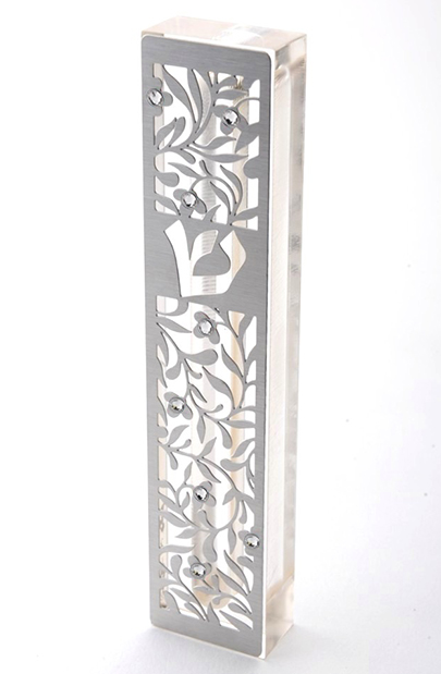 מסגרת נירוסטה בשילוב אבני סברובסקי על בסיס פרספקס.