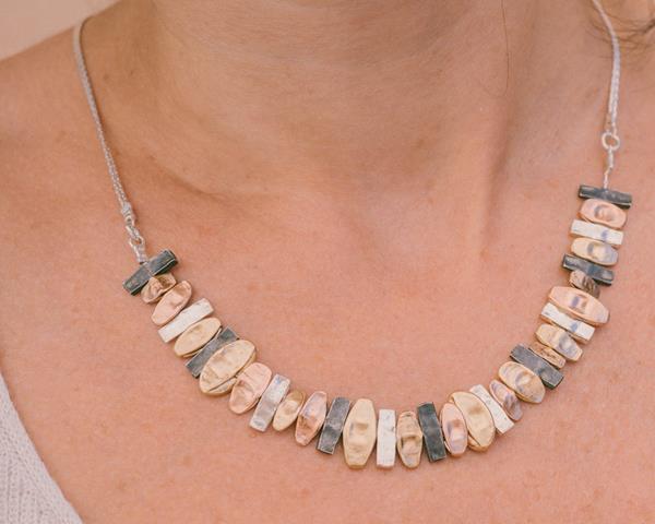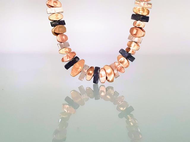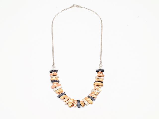 שרשרת כסף טהור עם דוגמת פסים עשוים מכסף טהור, כסף טהור מושחר וגולדפילד 14K